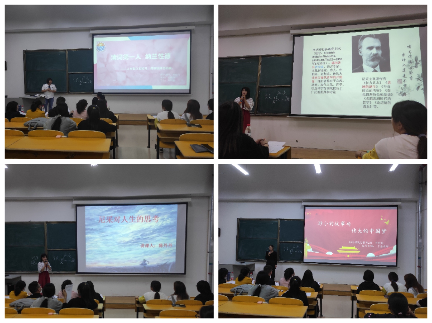 其中,20级思政一班团队带来《学习清朝诗词,品悟文学典韵》一课,她主要讲解纳兰容若的木兰诗,“人生若只如初见”,诵读国学经典,品悟中华文化;