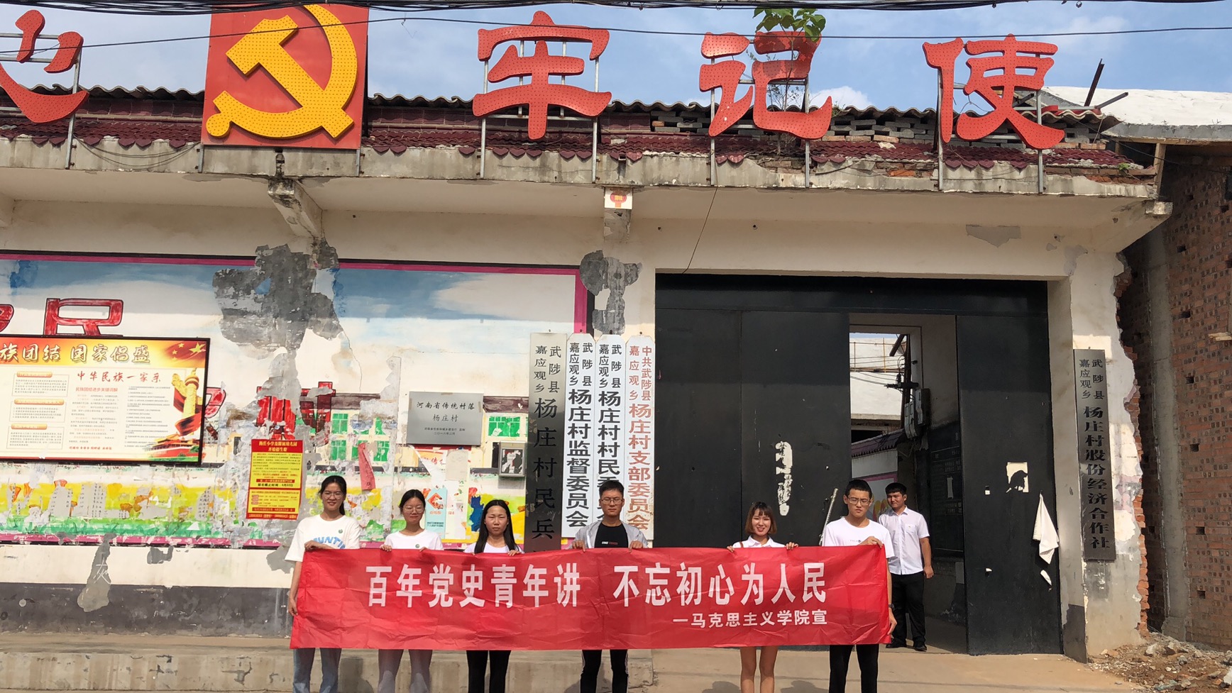 为庆祝中国共产党成立100周年,持续深化爱国主义教育,传承红色基因。7月3日,马克思主义党史理论宣讲团与交通工程党史宣讲团联手,走进此次老员工暑期“三下乡”社会实践的第二站---武陟县杨庄,数十名师生代表及杨庄工作人员现场参与了党史聆听。