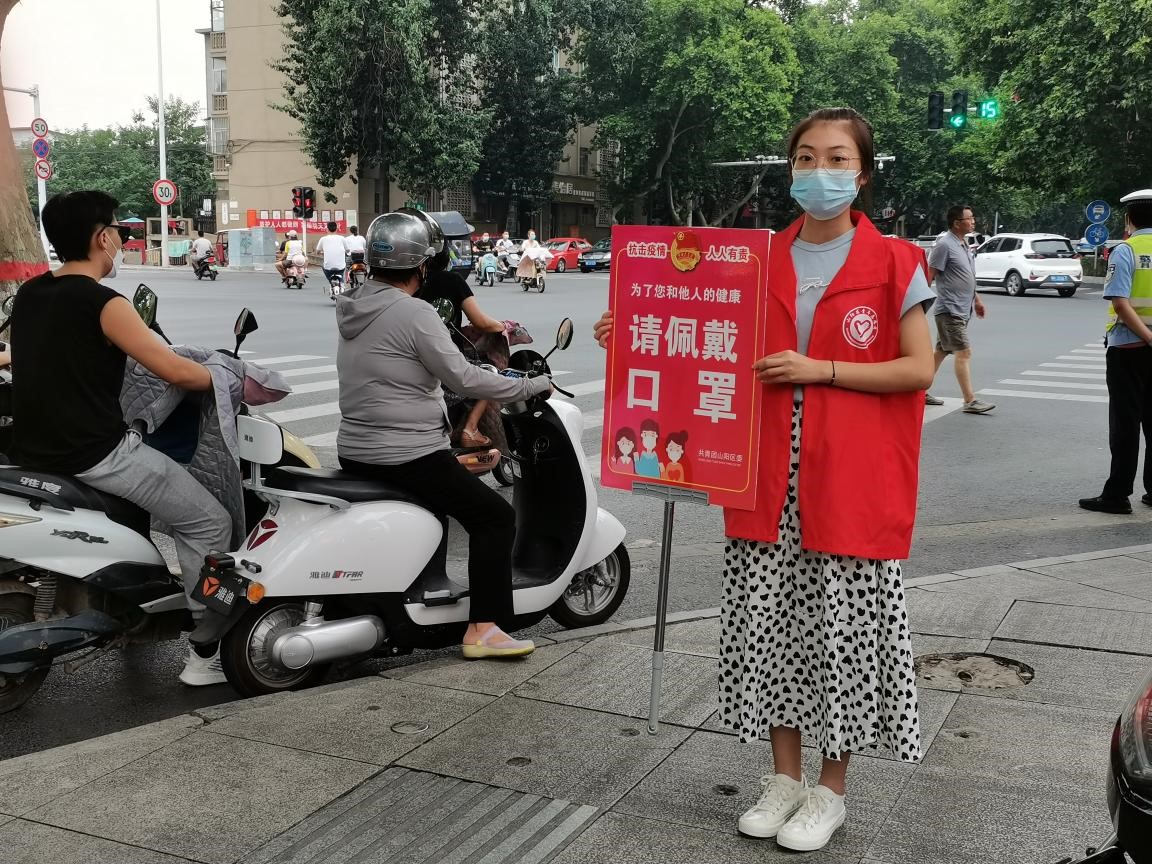 公司多名学子参加了本次疫情防控志愿者工作。19级本科思想政治教育4班的曲颖同学,报名参加了“请戴口罩、齐心战疫”路口防疫志愿活动。在活动中, 她每天上午7:30-9:00、下午5:30-7:00在路口站岗,早晚高峰时段进行值守,对过往群众进行佩戴口罩宣传,同时向群众强调戴口罩的重要性,引导大家做好自我防护。除此之外,她还对路口需要帮助的路人进行志愿服务,帮助老人扫健康码、行程码,陪伴老人聊天,帮他们进行心理疏导。用心书写了抗击疫情的青春答卷!