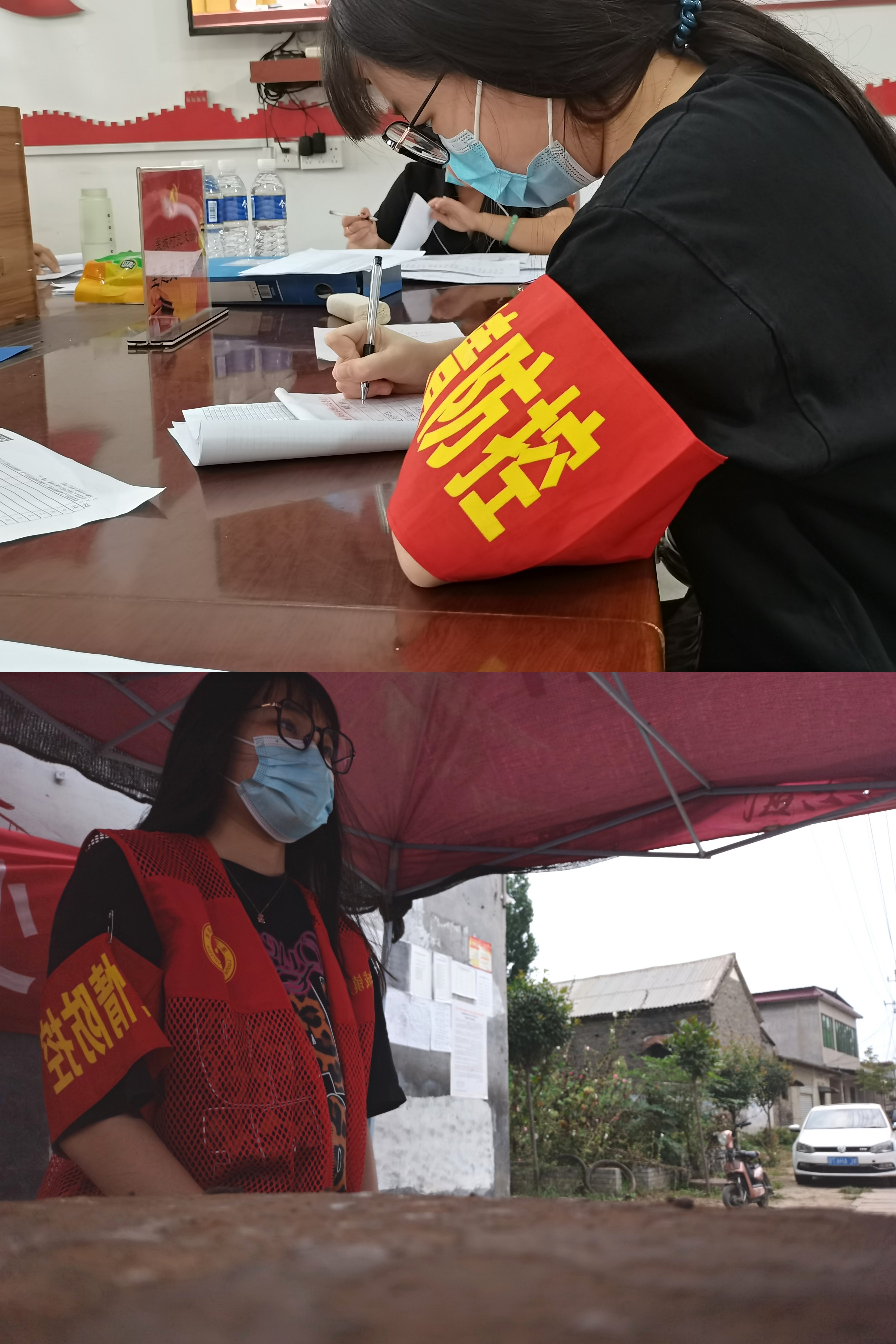 20级本科思想政治教育1班的彭雨朦同学,她积极地参加了志愿活动,排查村庄人员核酸检测情况,并且她还主动参加到疫情防控的值班队伍当中,对出入村庄的百姓进行登记以及测温等一系列防控操作流程,为自己的家乡疫情防控献出了自己的一份力量。