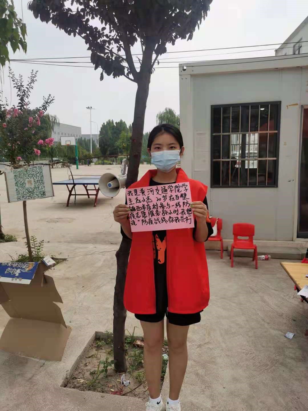 20级本科思想政治教育2班的赵小杰同学,主动参加了安阳县白璧镇疫情防控志愿者活动。在防疫期间,她主要在交通要道防控点处检查值守、对进出车辆和人员进行排查和登记,也参与了排查返乡及流动人员的相关工作,向村民们普及新冠疫苗对于防疫的重要意义,并在定点接种处做志愿服务。