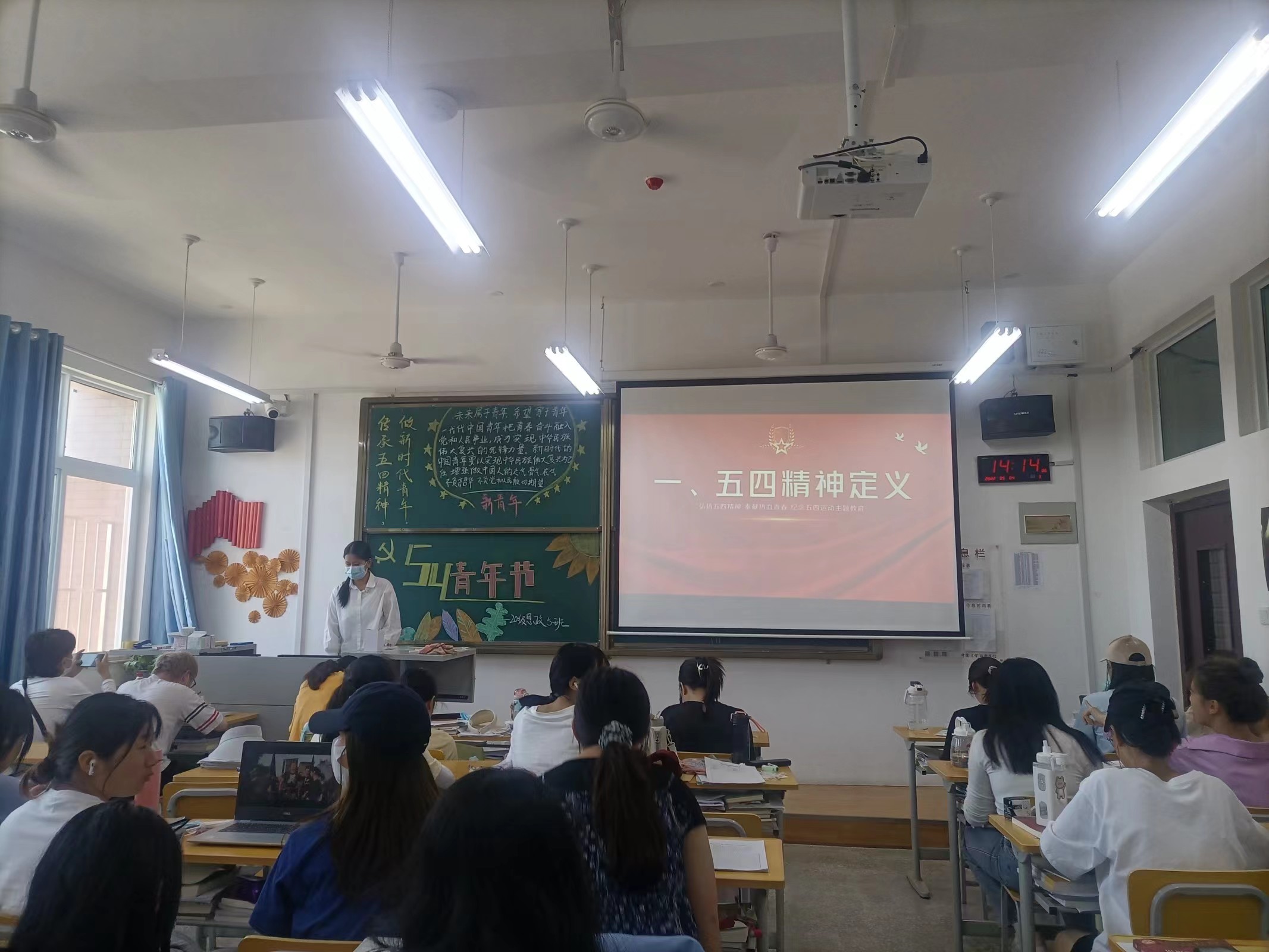 此次班会的举办,既激发了同学们的爱国热情,也使得同学们对“五四精神”有了更加深刻的认识和理解。一代人有一代人的长征,一代人有一代人的担当,建成社会主义现代化强国,实现中华民族伟大复兴,是一场接力跑,我们作为新时代的团员青年,要传承五四精神,在这场接力跑中拥抱新时代、奋进新时代,让自己的青春在为祖国、为人民、为民族、为人类的奉献中焕发出更加绚丽的光彩!