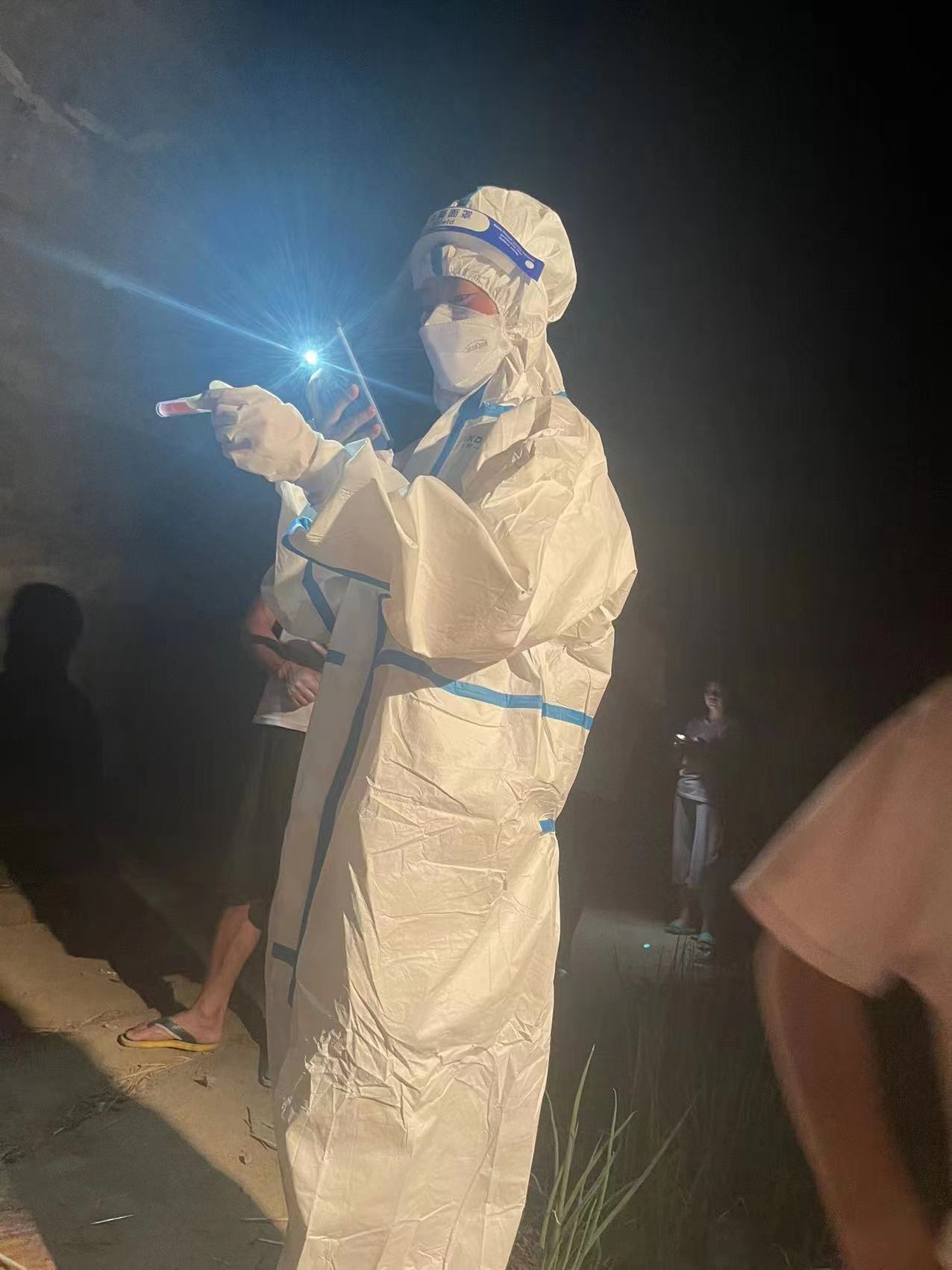 自7月9号以来,我们便开始了每天全员核酸,我主要的工作就是负责扫码登记,入户做核酸,每天凌晨三点起床,三点半开始做核酸,穿梭在村庄的各个角落,从天黑到天亮,每次脱下防护服,衣服全湿透,虽然很辛苦,但是很值得!这让我深刻的领悟到“疫情无情,人间有情”的真正含义。在工作期间,我引导叔叔阿姨,爷爷奶奶如何找健康卡,并帮他们截屏放入相册中,以便他们下次扫码,尽管我们都戴着口罩,但我仍能看得出他们眉眼间带笑意,回应我一个笑容,也会说一句“谢谢你啊”,简单几个字,让我倍感温暖。