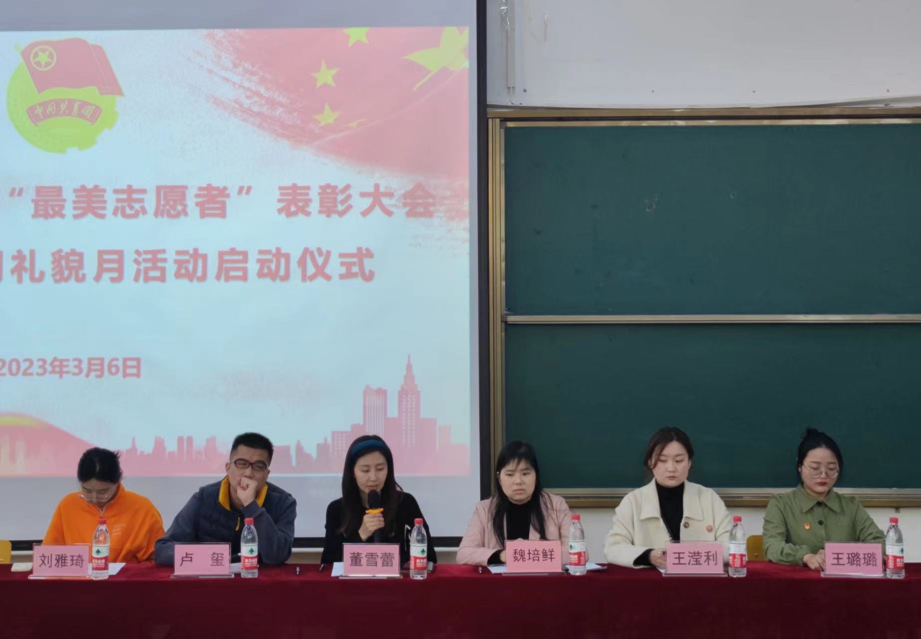 为贯彻落实习近平总书记对深入开展学雷锋活动作出的重要指示,营造良好的校园文化氛围,推动学雷锋志愿服务制度化、常态化、长效化。yL23411永利集团官网于3月6日在东校区修德楼A201教室召开2022-2023年“最美志愿者”表彰大会暨学雷锋文明礼貌月活动启动仪式。出席本次会议的有公司党总支副书记魏培鲜,团委书记董雪蕾,辅导员卢玺、刘雅琦、王滢利、王璐璐以及全院员工骨干、受表彰的志愿者代表。本次会议由院团委书记董雪蕾主持。