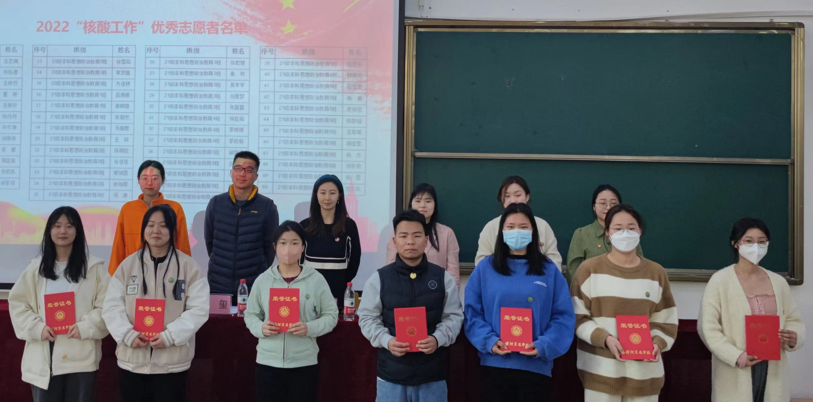 董老师首先向与会员工骨干和志愿代表阐释雷锋精神的深刻内涵,强调深入开展学雷锋志愿服务活动的重要意义,并宣布大会正式开始。接着,公司党总支副书记魏培鲜宣读获奖名单并对2022-2023学年在“抗疫工作”、“核酸工作”、“图书资料室搬迁”中表现优异的127名志愿者进行表彰,领导老师们为志愿者代表颁发荣誉证书并与他们合影留念,同时勉励受表彰的个人要珍惜荣誉,戒骄戒躁,再接再厉,再创佳绩。