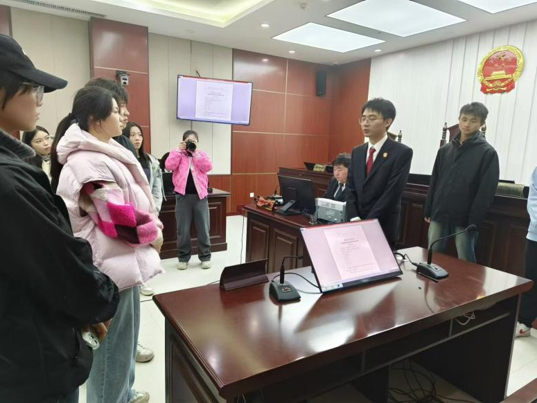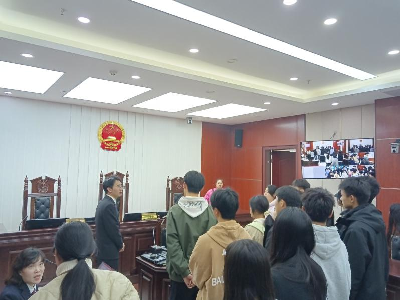 最后,师生们在现场共同观摩了两场刑事案件的庭审过程。整个庭审流程严肃规范、秩序井然,审判长严格把控庭审节奏,法庭调查、法庭辩论等环节依照法律有条不紊地展开。面对庄严肃穆的法庭,师生们全神贯注、静默倾听,用心感受法庭的神圣和庄严。