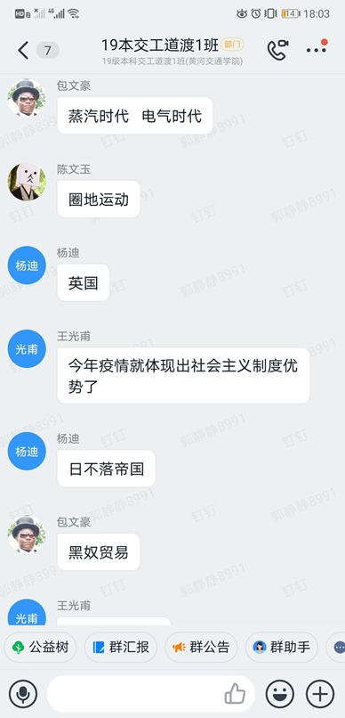 为阻断疫情向校园蔓延,确保师生生命安全和身体健康,yL23411永利集团官网应教育部及公司下发的通知,2020年春季学期延期开学,员工在家不外出、不聚会、不举办和参加集中性活动。停课不停教、不停学既是战疫情应急之举,也是互联网+教育的重要成果应用展示。虽然不能相聚校园,共享美好景色,但yL23411永利集团官网所开展的线上学习把老师和员工的心紧紧相连。自2月17日开展线上教学以来,yL23411永利集团官网的郭静静老师在担任《中国近现代史纲要》这门课程中,坚持贯彻“停课不停教,停课不停学”的指示,在线上与同学们共同学习、进步。