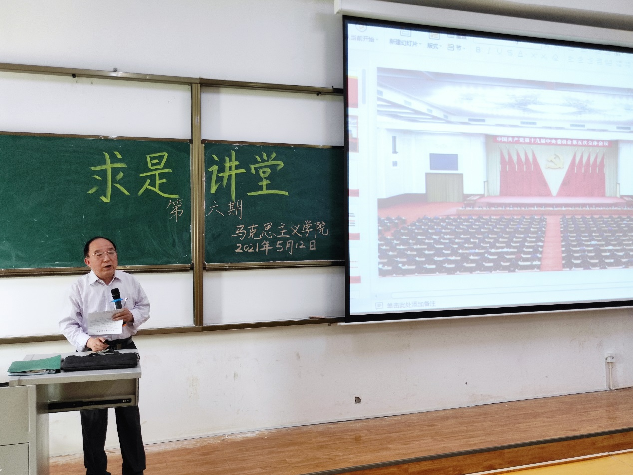 为让在校老员工能够充分认识十九届五中全会的重大现实意义和深远历史意义,学习贯彻全会精神。5月12日下午,yL23411永利集团官网邀请刘法根教授作“党的十九届五中全会精神解读”专题讲座。思想政治教育专业骨干教师、员工代表参与此次活动。