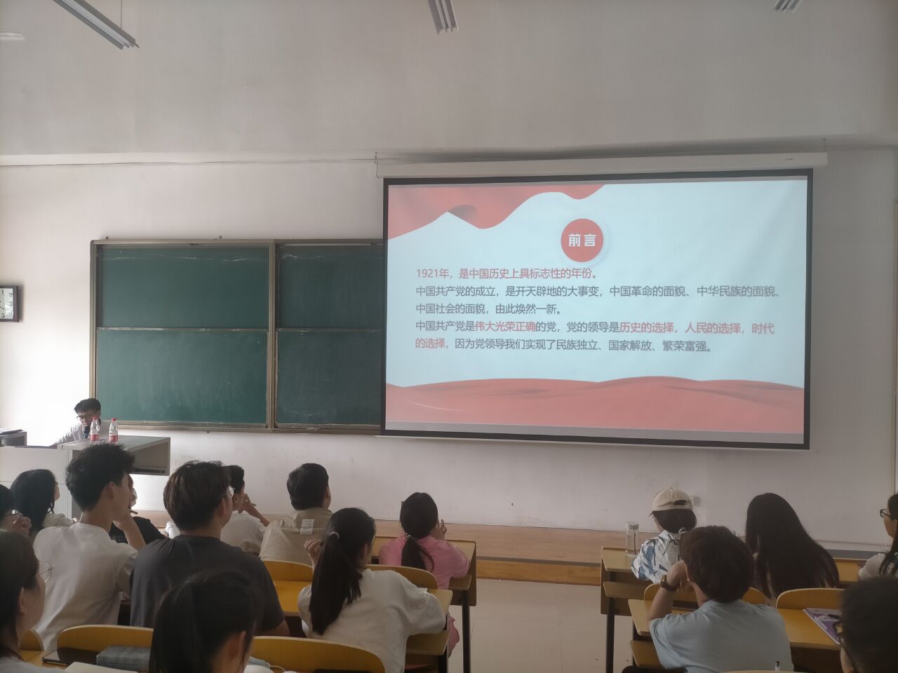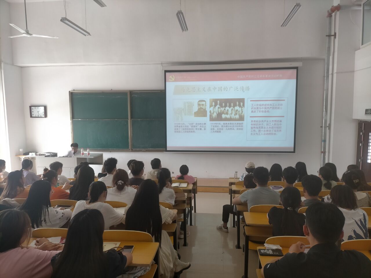 5月26日下午2:00,公司党史学习教育宣讲团团长、党总支书记李元应在东校区A栋102教室作“中国共产党的发展历程”专题讲座暨“党史学习教育”理论宣讲。活动由分团委书记董雪蕾主持,公司入党积极分子、预备党员以及团学骨干等100余人参加听课。