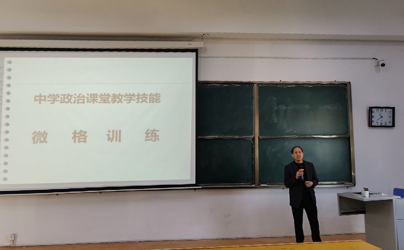 李景旺对本次集中实践提出了要求和期望,希望同学们能把握实习机会,认真学习,夯实专业基础。他还以《中学政治课堂教学技能——微格训练》为主题,给同学们上了节非常精彩的理论宣讲课。