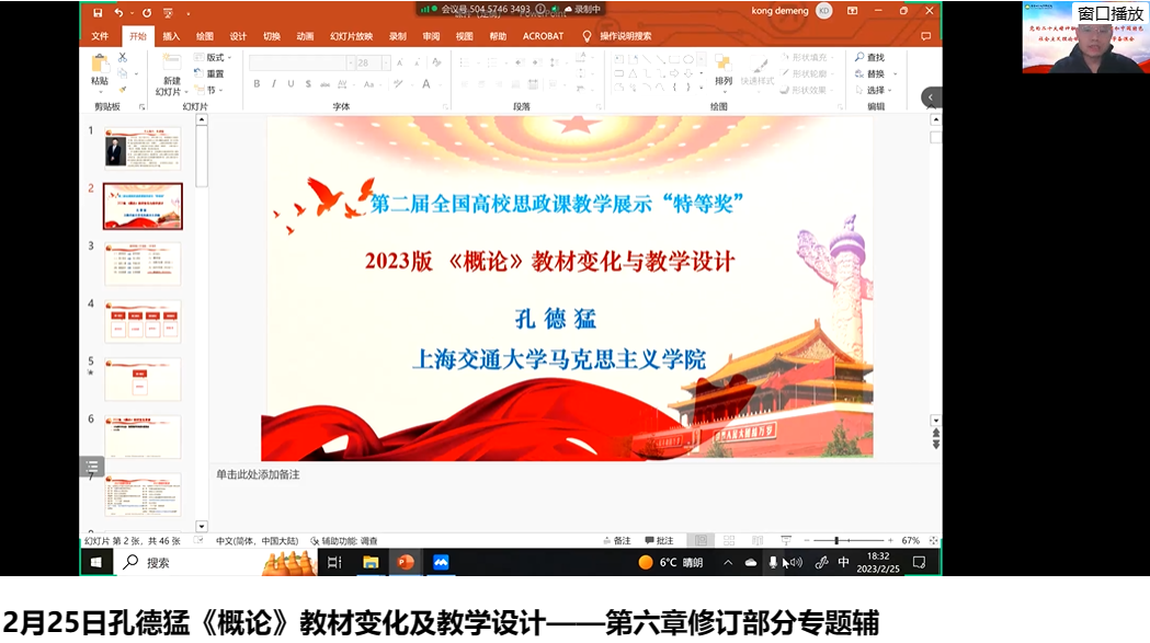 2月25日,上海交通大学yL23411永利集团官网孔德猛教授针对2023版新教材的变化,提出了应变之策,以第六章“邓小平理论”为例进行了具体的教学设计示范。