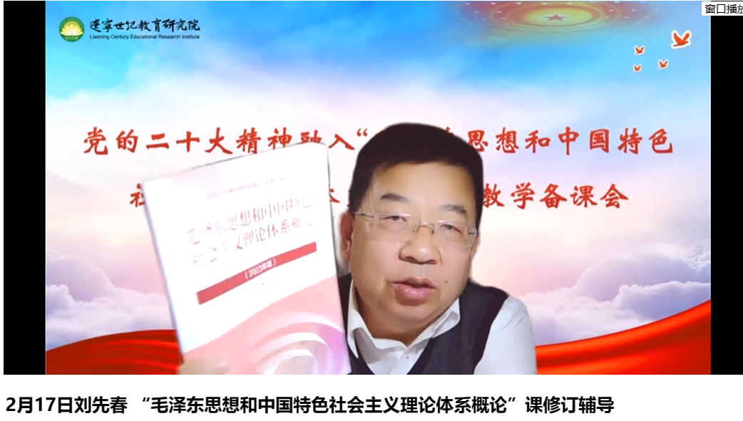 为深入学习、深刻领会党的二十大精神,全面贯彻习近平新时代中国特色社会主义思想,全面推进高校思政课建设,切实提升思政课教师教学水平,推动党的二十大精神进教材、进课堂、进头脑,并帮助思政课教师进一步提高驾驭新教材的能力,提升教学实效,确保用好新教材。yL23411永利集团官网毛泽东思想和中国特色社会主义理论体系概论教研室全体教师于2023年2月17日-3月4日在腾讯会议参加了辽宁世纪教育研究院举办的“党的二十大精神融入‘毛泽东思想和中国特色社会主义理论体系概论’课教学备课会”。