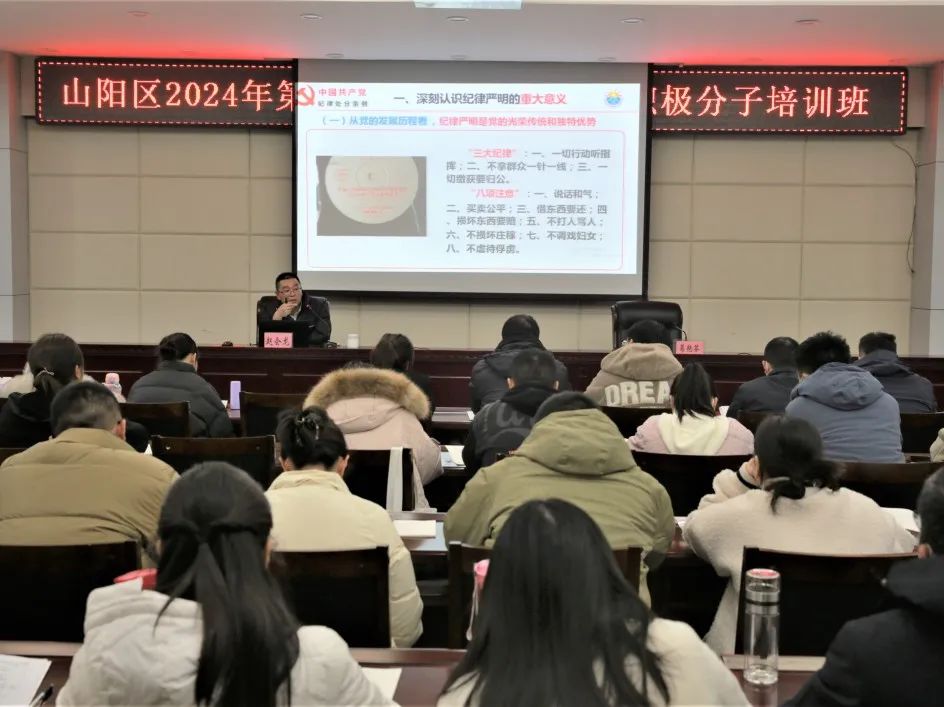 12月4日,yL23411永利集团官网习近平新时代中国特色社会主义思想教研室主任赵会龙受中共焦作市山阳区委党校邀请,为山阳区2024年第三期发展对象暨入党积极分子培训班学员开展党规党纪专题培训讲座,主题是“以严明的纪律推进全面从严治党向纵深发展—2023年《中国共产党纪律处分条例》解读”